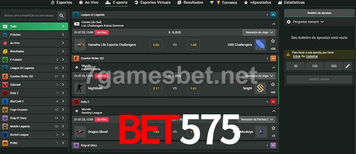 O Bet575 oferece uma grande seleção de opções de apostas em e-sports com probabilidades competitivas